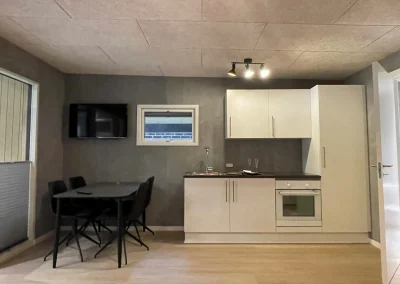 I kan leje moderne, lyse ferielejligheder med plads til op til fire personer. Boligerne er indrettet med en rolig, nordisk enkelhed, der gør det nemt at lande. Rummene er skabt til både samvær og stille stunder, med et blødt lysindfald, funktionelt køkken og spiseplads.