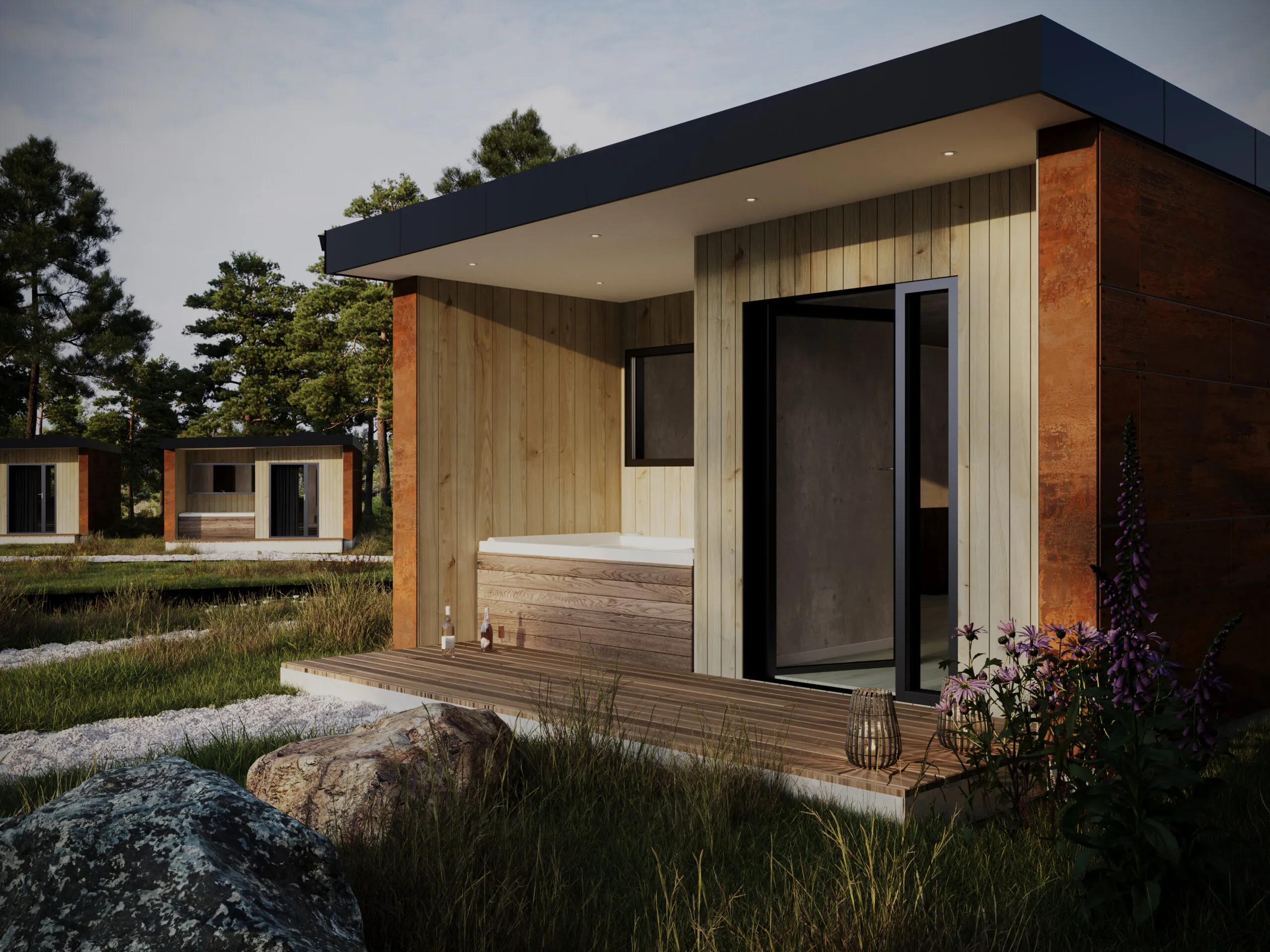 Her får I lyse, fleksible og gennemtænkte rum, hvor arkitekturen inviterer til nærvær og afslapning. Feriehuse skabt til at stå smukt, holde længe og lade omgivelserne få plads.